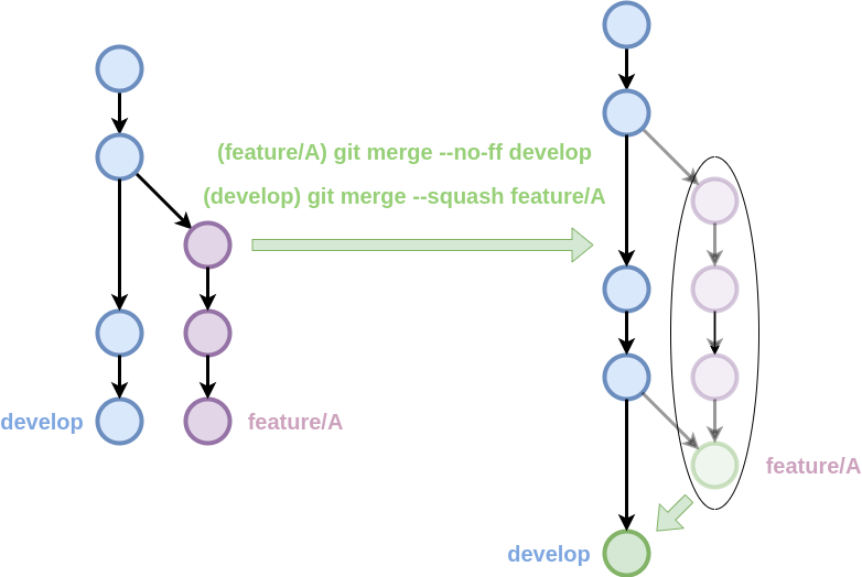 : Cada funcionalitat nova es desenvolupa en una branca pròpia.Depenent de la naturalesa del canvis, es pot optar per utilitzar diferents prefixes: